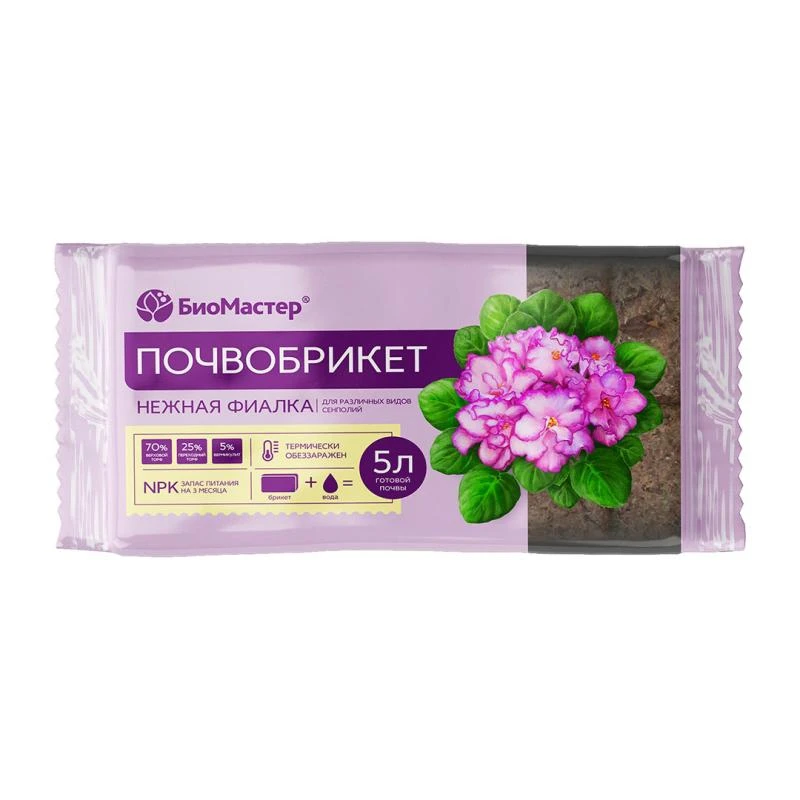 Прессованная почва, изготовленная на основе высококачественных торфов с добавлением питательных веществ, идеально подходит для выращивания растений семейства геснериевых (сенполия, стрептокарпус, фиалка, колумнея, глоксиния, синнингия и др.).