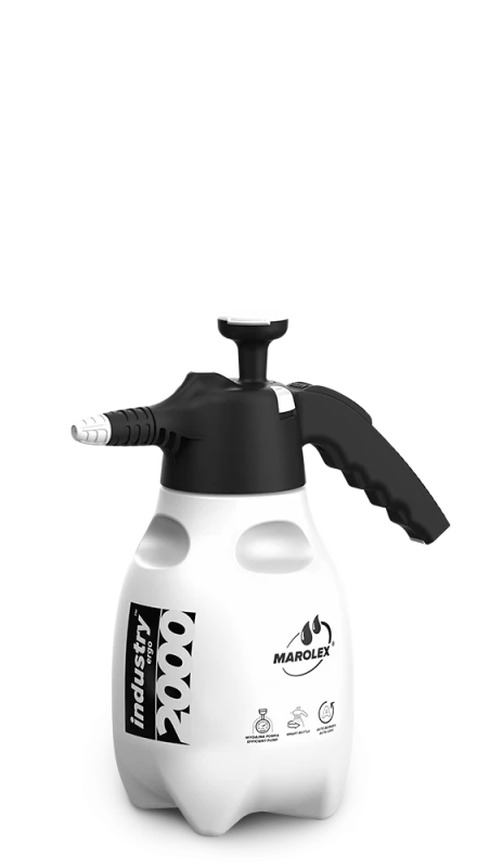 Опрыскиватель MAROLEX industry ergo acid 2000 2Л предназначен для нанесения жидких растворов химически активных, моющих и иных средств. Опрыскиватель Industry ergo с прокладками VITON предназначен для кислых и нейтральных чистящих средств и химикатов.