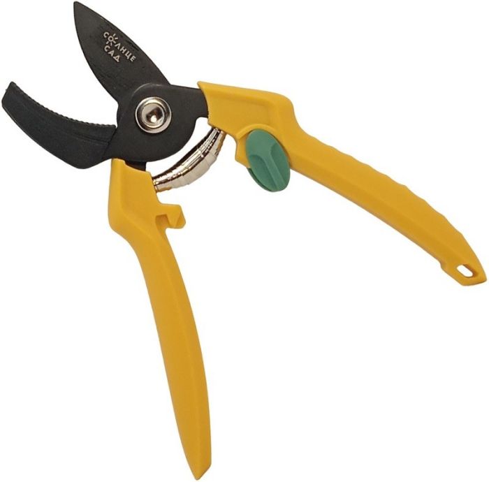Современный садовый секатор с наковаленкой предназначен для обрезки сухих, жестких веток и подрезки кустарников. Секатор позволяет срезать ветки диаметром до 15мм. Режущее (рабочее) лезвие опускается на наковальню, которая в свою очередь, поддерживает ветку снизу, чтобы уменьшить вероятность ее раскола. Лезвие с антикоррозийным покрытием. Для безопасного хранения секатор можно с лёгкостью заблокировать одной рукой с помощью фиксатора. Ударопрочные, нескользящие пластиковые ручки.