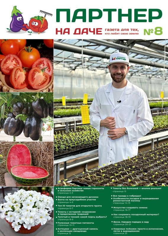 В выпуске № 8 газеты «Партнер на даче» вас ждет глубокое погружение в мир современного растениеводства, где каждый найдет ценные знания: от новичков до опытных дачников.
