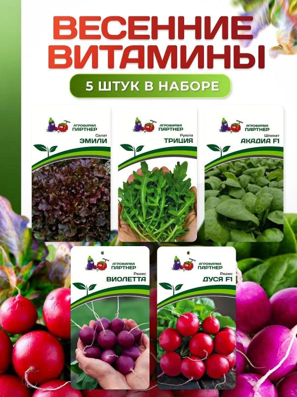 Каждый дачник с нетерпением ждет весны, чтобы с первыми теплыми лучами солнца высадить первые семена. И нет ничего приятнее, чем порадовать себя свежими и полезными овощами и зеленью, сорванными прямо с грядки. Специально для тех, кто жаждет быстрого урожая, мы собрали набор "Весенние витамины" – коллекцию самых популярных и неприхотливых сортов.