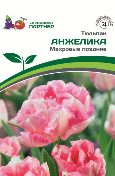 Сорт Анжелика – необычайно романтичный, с густомахровыми пионовидными цветками. На розовом фоне лепестков периодически возникают белёсые или розово-коралловые разводы, которые привносят в образ изюминку. На легком ветру лепестки красиво развеваются, однако они прочные и долго не опадают, благодаря чему цветение длится до 3 недель. Растения крепкие, высотой 40-45 см, бутоны 6-8 см в высоту, в раскрытом состоянии достигают 8-10 см в диаметре. Сорт обладает легким, приятным ароматом.