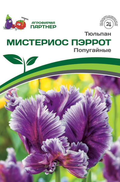 Одним из самых волшебных попугайных тюльпанов можно назвать сорт Мистериос Пэррот. Его цветки очень крупные – до 20 см в диаметре, фиолетового цвета, которые в разное время суток и в зависимости от погоды приобретают сиренево-розовые, бордово-розовые и неоновые оттенки. Лепестки сильно-перистые имеют более светлый край, создавая эффект свечения.