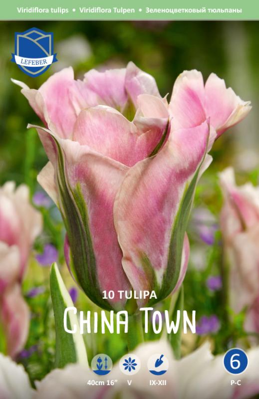 Невероятно оригинальный тюльпан Чайна Таун привнесет элегантность и свежесть в ваш сад. Мягкие розовые лепестки с зелеными мазками на их внешней и внутренней стороне великолепно гармонируют с бело-розовым кантом на сочных зеленых листьях. Растения высотой около 35 см в течение 3 недель будут украшать ваши клумбы.