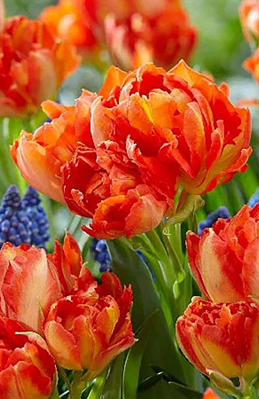 Сорт Монте Оранж удивляет наполненностью цветов и богатством красок. Его бокал играет всеми оттенками лососевого, оранжевого и розового, а зеленая полоса по центру внешних лепестков делает цветок еще более сочным. Растения крепкие, высотой до 45 см, в раскрытом состоянии пионовидные бутоны достигают 8-10 см в диаметре. Посадив тюльпан Монте Оранж на своих участках, вы добавите теплоты в дизайна сада.