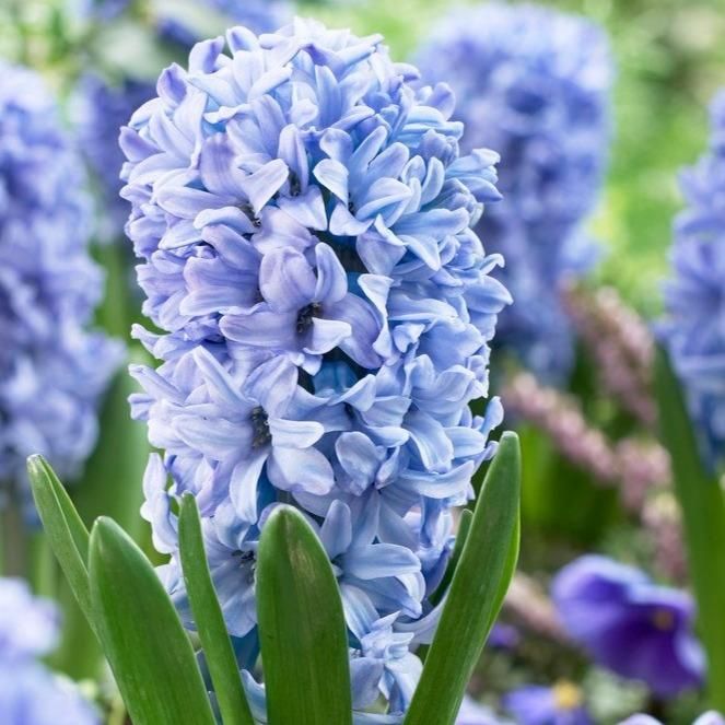 Ярко-голубые ручьи в весеннем солнце - это гиацинт Аква. Все оттенки синего, сиреневого и фиолетового в этих ярких соцветиях. Благодаря раннему обильному и такому выразительному цветению с сильным ароматом, гиацинт Aqua покорил сердца многих садоводов. Купить луковицы гиацинта восточного Аква стоит для создания красивой экспозиции, посаженной небольшими или большими группами вдоль дорожек, бордюров. Высота растения около 25 см, диаметр цветов до 4 см. Посадить гиацинт Aqua лучше на защищенном от ветра солнечном участке с питательным грунтом.