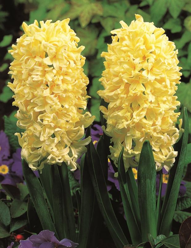 Гиацинт "Голден Краун" - это сорт с лепестками теплого желтовато-сливочного оттенка, который хорошо сочетается с фиолетовыми и розовыми цветами. Он относится к луковичным многолетним растениям и цветет весной. "Голден Краун" часто используется для оформления клумб и садовых композиций, придавая им яркий акцент.