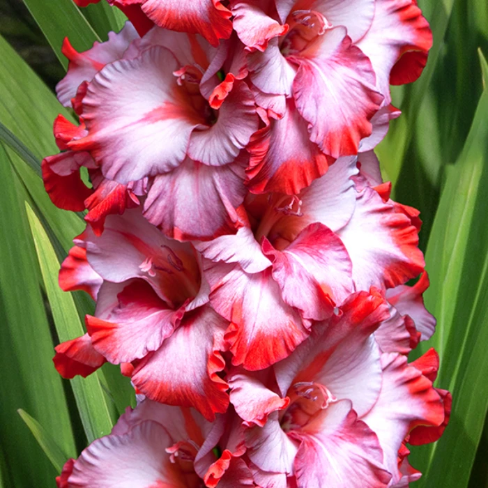 В 2015 году появление гладиолуса Грэйхаунд произвело настоящий фурор в среде цветоводов. Оно и неудивительно, ведь его шикарные крупные соцветия со сложной окраской невероятно красивы! Плотные лепестки с гофрированными краями демонстрируют плавные переходы от серебристо-белого до лавандового, от лавандового – до сиреневого, а заканчиваются яркой красной каймой. Высота растения достигает 90-110 см, а цветок в диаметре - около 14 см.