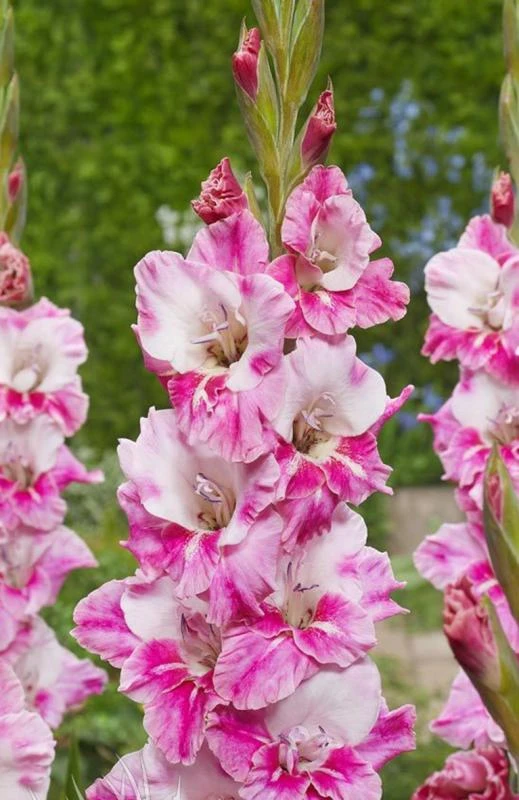 Красивые растения высотой до 120 см несомненно привлекут к себе внимание и будут видны из любого уголка сада. Гофрированные цветки кремово-розового оттенка с яркими розовато-лиловыми нижними лепестками расположены плотно на крепком цветоносе длиной до 60 см. Гладиолусы предпочитают солнечные или слегка притененные участки без застоя влаги в почве и защищенные от ветров. Рекомендуемое время посадки: апрель-май, когда температура почвы достигнет +8+12 градусов на глубину 10-12 см (в зависимости от размера луковиц) с расстоянием 10-15 см друг от друга.