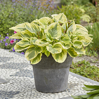Хоста Пейсли Бордер является долгожданным реверсивным спортом от красавицы Лейксайд Пейсли Принт. Разрастается данный сорт довольно медленно, но все равно выглядит очень декоративно. Высота растения около 40 см, тогда как в ширину кусты раскидывают листья до 85 см. Центр листьев зеленый, а волнистые края — желтоватые весной и молочные — летом. Данный сорт отлично будет смотреться не только в тенистых уголках, но и на солнце.