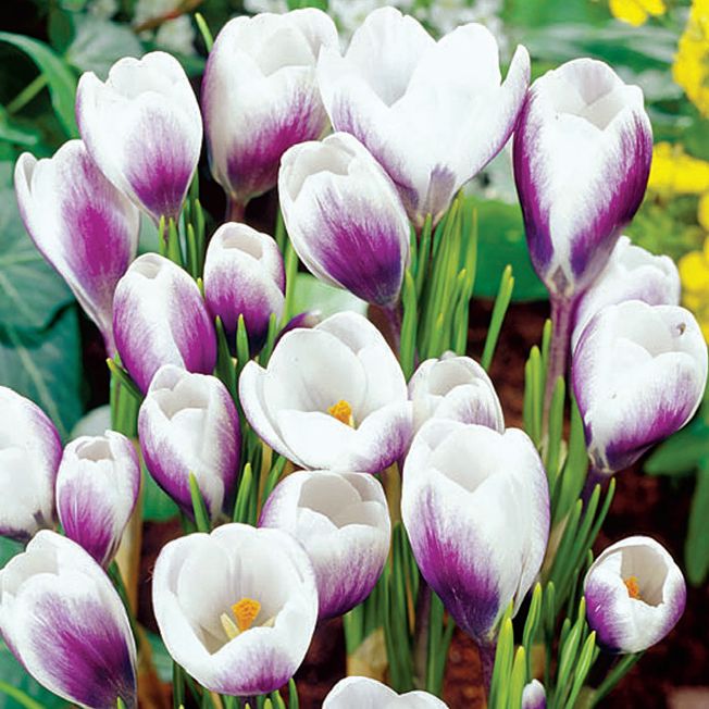 Крокус Принс Клаус – сорт с белыми цветками с голубовато-фиолетовыми пятнами на внешней стороне лепестков.Красивые весенние цветы, которые цветут одними из первых. Отличное растение для массовых посадок, украшения склонов и альпийских горок. Во время цветения крокусы выглядят великолепно и приковывают к себе внимание.