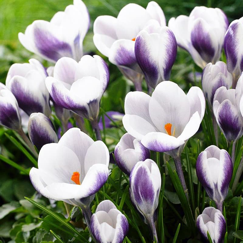 Крокус Принс Клаус – сорт с белыми цветками с голубовато-фиолетовыми пятнами на внешней стороне лепестков.Красивые весенние цветы, которые цветут одними из первых. Отличное растение для массовых посадок, украшения склонов и альпийских горок. Во время цветения крокусы выглядят великолепно и приковывают к себе внимание.
