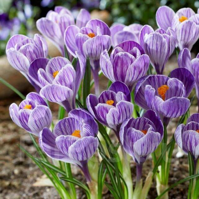 Крокус "Стрипед Бьюти" - очень морозостойкий сорт, зацветает одним из первых. Луковицы крокусов, отлично приживаются при любых климатических условиях, отличаются обильным цветением. Цветки бокаловидной формы, нежно-сиреневого цвета, внешние лепестки белый с темно-фиолетовым пятном. Растение неприхотливое в выращивании, невысокое, стебель прямостоячий, крепкий.