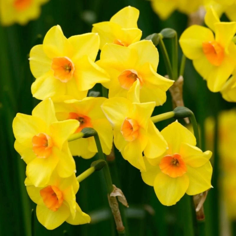 Нарцисс Мартинетте принадлежит к виду букетных. Яркое желто-оранжевое сочетание цветов, стройная осанка, несколько бутонов на одном цветоносе – все это очень привлекает внимание садоводов.