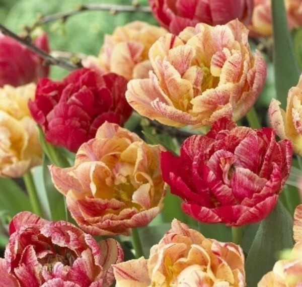 Уникальный сорт густомахрового тюльпана с цветками "хамелеонами", который относится к серии "Двойной эффект". Плотные лепестки постепенно изменяют окраску: от нежно-абрикосового к малиновому через эффектный меланж двух окрасок. Такой сорт великолепно смотрится в одиночной посадке, так как не требует дополнения. Посадите его группой на фоне хвойных или других вечнозеленых растений, и ваш сад заиграет волшебными красками!