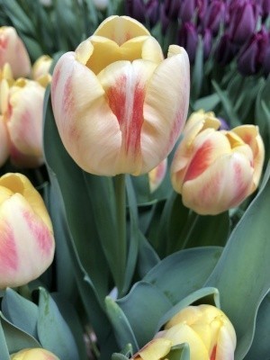 Окраска: лепестки обладают ванильно-жёлтым или оранжевым оттенком, который дополняется контрастными малиново-красными мазками.