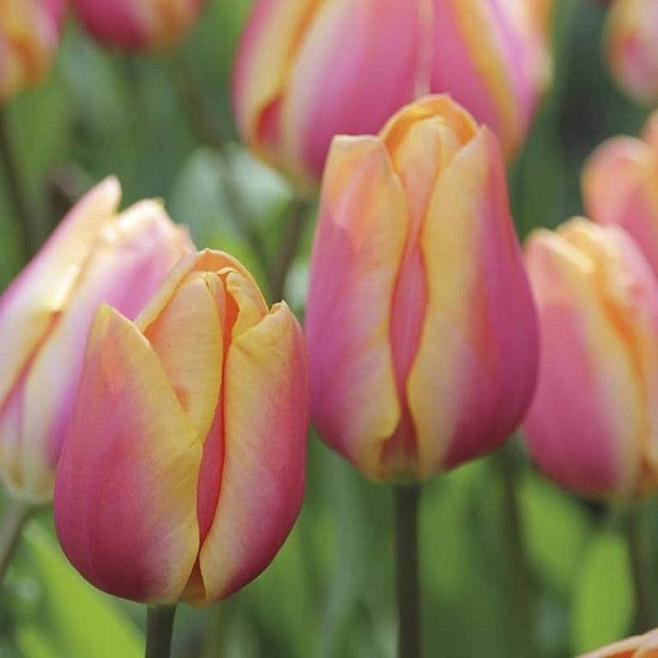 Тюльпан многоцветковый Драгон Кинг - оригинальный сорт, на одном стебле которого расцветают 4-6 цветков насыщенно-розового цвета. Цветоносы высокие, 40-45 см, но при этом прочные, не заваливаются и не боятся ветра. Цветет этот тюльпан в мае, образуя пышный букет. Боковые цветки, как правило, меньше по размеру, чем центральный и имеют слегка измененную форму. Многоцветковые тюльпаны широко используются в ландшафтном дизайне.