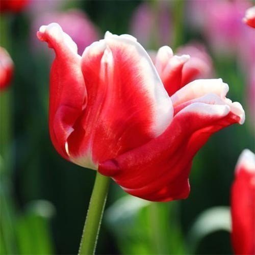 Одни из самых необычных тюльпанов, которые относятся в типу Пикчер и имеют вид короны. Плотные лепестки алого цвета отогнуты по краю, окрашенному в чистейший белый цвет. Такой контраст делает цветок еще более заментным! Сорт великолепно смотрится в монопосадке на фоне газона или хвойных растений, а также отлично ведет себя в срезке.