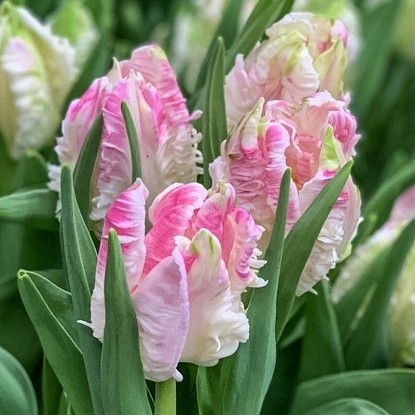 Тюльпаны Кабанна, относящиеся к классу Попугайные, являются одними из самых красивых и уникальных. Цветы имеют бокаловидную форму, а кусты достигают высоты от 45 до 50 см. Лепестки волнисто-складчатые, бархатистые на ощупь. Окраска лепестков молочно-белая, постепенно переходит в нежно-розовую с зеленовато-желтыми штрихами.