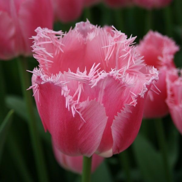 Сорт Кашерель отличается романтичной розовой окраской лепестков классического бокала, края которого обрамлены тонкой игольчатой бахромой белого цвета, создающей эффект инея. Высота крепких цветоносов достигает 45 см, благодаря чему данный сорт прекрасно смотрится в срезке.