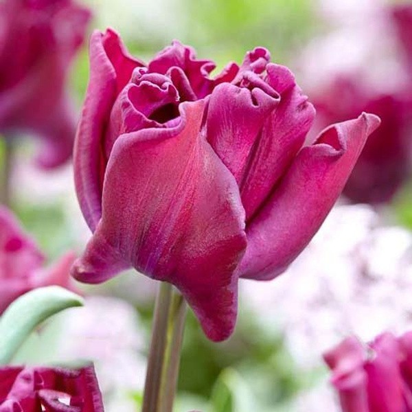 Благодаря плотным сильно сжатым лепесткам в виде короны, цветки сорта Краун оф Негрита смотрятся махровыми. Высота бутонов 9-10 см, а самого растения – около 40 см. Лепестки имеют красивый темно-фиолетовый окрас, а ярко-желтый пестик выступает контрастом. Цветение длительное – до 4 недель.