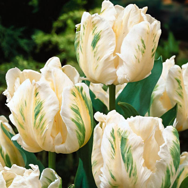 Сначала цветок смотрится исключительно зелёным с несколькими белыми акцентами, однако по мере развития распускается и становится белым. Центр цветка окрашен в сливочно-белый цвет.