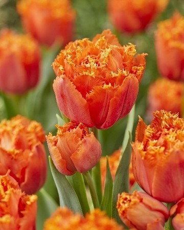 Одиночные цветки тюльпана бахромчатого "Orange Passion" подчеркнуты оранжево-красным оттенком, при этом их диаметр составляет от 4,5 до 5 см, что делает этот цветок просто великолепным. Распределение цвета по цветку однородно, без ярко выраженных пятен или переходов от одного цвета к другому. Также стоит отметить, что у этого тюльпана есть вторичный цвет, который представлен оранжево-темно-оранжевым оттенком. Эта дополнительная цветовая гамма придает цветку особую глубину и насыщенность, делая его еще более привлекательным.