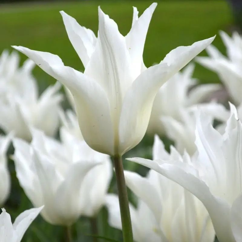 Один из самых популярных лилиецветных тюльпанов! Высокие бокалы чистейшего белого цвета на протяжении всего цветения остаются кристально чистыми и практически не раскрываются, держа форму. Этот сорт добавит легкости и элегантности вашему саду. Он отлично сочетается как с яркими растениями, так и с нежными пастельными оттенками.