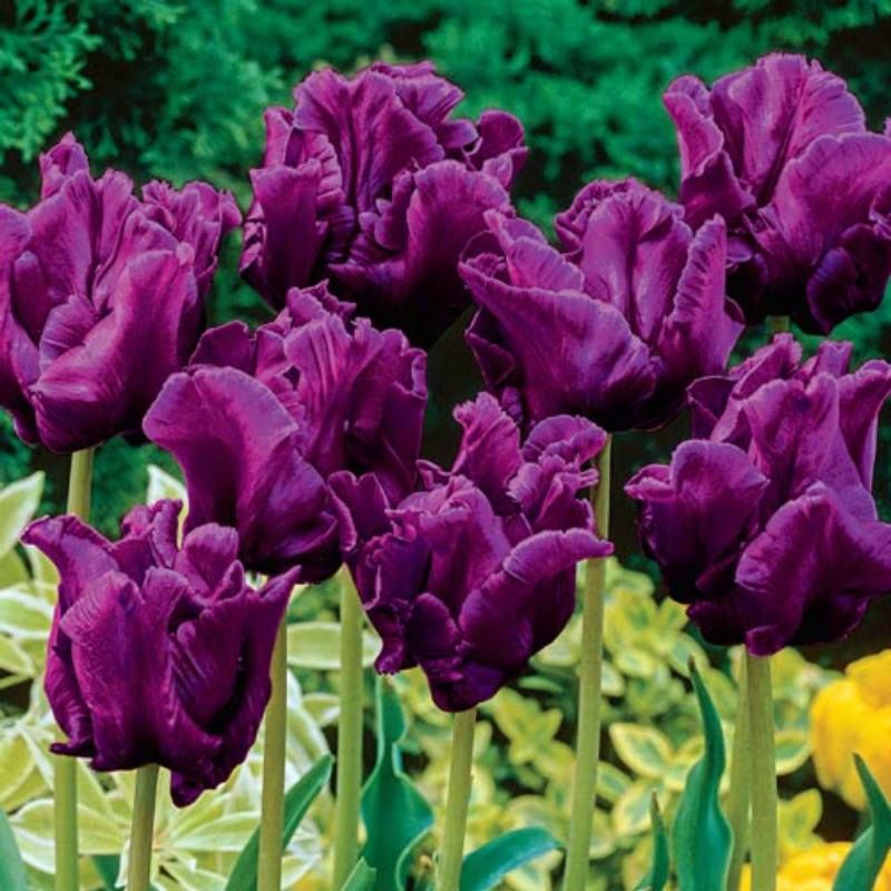 Таинственный и загадочный, как сама тайна! Попугайный тюльпан Викториас Сикрет, несомненно, заворожит вас своими цветками. Его лепестки экзотической формы с волнистыми краями похожи на перья птиц. Цветы сложной восхитительной окраски: бордового с бархатисто-фиолетовым оттенком, на внешней стороне лепестков с намеком на синий окрас. Высота растения - до 60 см, а бокала - около 10 см. Цветение очень долгое - до месяца. При полном роспуске диаметр цветка может достигать 20 см! Тюльпан невероятно красив в срезке.