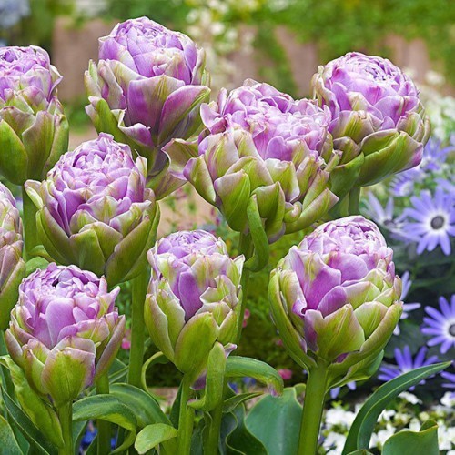 Тюльпаны Вайолет Прана, также известные как Violet Pranaa, – это сорт тюльпанов, относящийся к классу 11 – Махровые поздние. Цветки имеют сиреневую окраску, при этом внешние лепестки зеленые. Этот двухцветный сорт отличается яркой насыщенностью цвета и махровостью цветков. Высота растения составляет около 40 см, что делает его идеальным для озеленения участка.