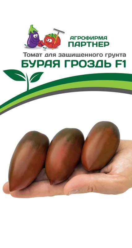 Впервые купила 2 сезона назад, скажу, что это название…«Бурая гроздь» подходит этому гибриду. Ну, и производителю можно сказать спасибо хотя бы потому, что плоды получились в точности такими, как на картинке, даже приведённому описанию соответствуют. Рекомендую.