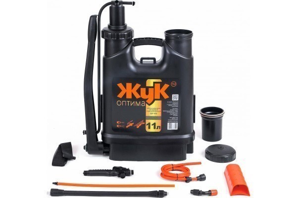 Ранцевый опрыскиватель Жук 11л Оптима используется для опрыскивания, подкормки и полива растений, кустарников, деревьев средней высоты, картофеля, а также для мытья стен, стекол и других хозяйственных работ. Идеально подходит для обработки больших садовых участков большим количеством жидкости.