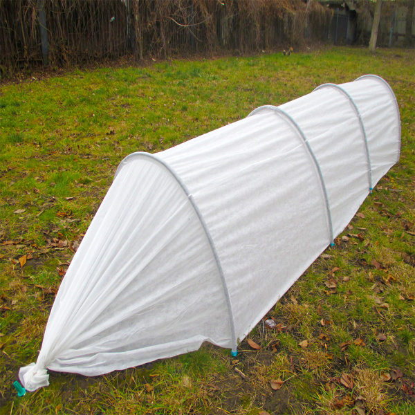 Парник удобен в эксплуатации - для полива растений не нужно снимать с него чехол. Материал легко сдвигается вдоль дуг вверх на любую высоту, а чтобы не сползал, его крепят на дуге клипсами прищепками, которые идут в комплекте. Полили, пропололи и опять спустили материал вниз и зафиксировали его клипсами уже у земли, чтобы не задирался. Просто, удобно, эффективно!