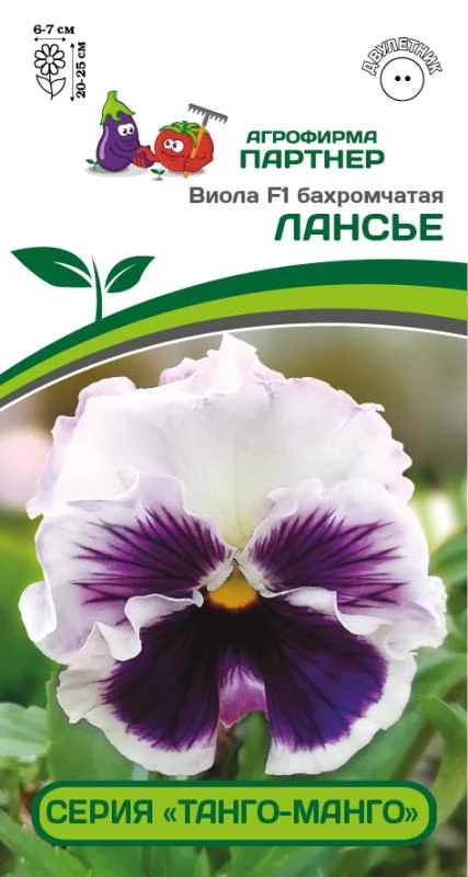 Усовершенствованную бахромчатую виолу с волшебными цветками заметят все! В нынешнем сезоне заблистала танцевальная серия «Танго-Манго», которая непременно закружит многочисленными воланами рюшистых юбок в самом ритмичном танце – танце цветов. Не коронка, а настоящая гофрированная юбочка-пачка, декору которой позавидует любая модница. При всей своей воздушности, является стойким созданием: растения хорошо переносят ветра и дожди, отличаются холодостойкостью и устойчивостью к болезням. Гибрид не особо стремится разрастаться, а цвести жаждет до глубокой осени, когда прочие уже отдыхают, выставляя напоказ целый букет чудо-цветков. Данная серия была выведена специально для корзин и контейнеров, а также для оформления городских территорий и клумб, где важна устойчивость и предъявляются высочайшие требования к внешнему виду растений. Нарядные ансамбли с участием «анюток» в контейнерном декоре позволят превратить террасу или балкон в настоящий райский уголок. А ароматные цветки на крепких цветоносах прекрасно подойдут для создания миниатюрных букетов и небольших композиций, которые можно дарить, не имея для этого особого повода! Рекомендуем объем кашпо 2-3 л на одно растение и схему посадки в грунте – 20х20 см. Важно! Окраска цветков может варьироваться чуть в более светлый или темный тон, в зависимости от условий выращивания: освещения, полива, температуры и подкормок.
