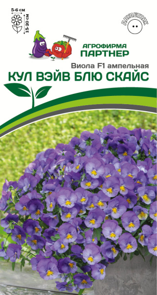 Превосходная ампельная виола с самыми выдающимися характеристиками! Любоваться, восторгаться и гордиться можно многими цветами, а вот с виолой Кул Вэйв можно еще и общаться: у каждого цветка свое выражение "лица" и настроение - настоящая "услада сердца"! Целое ароматное облако "порхающих бабочек" кружит над сочной, здоровой, будто малахитовой, листвой и откровенно вызывает восхищение! Благодаря силе и скорости роста, растение отлично кустится, быстро заполняет емкости и образует роскошный куст диаметром 50-60 см. Нельзя не отметить ее исключительную однородность, выровненность по габитусу и времени цветения, а также непревзойденную устойчивость к болезням. Растения стойко переносят капризы погоды, первыми стартуют ранней весной и на протяжении нескольких месяцев радуют цветением, создавая ощущение праздника. Неприхотливая и холодостойкая виола Кул Вэйв - это прекрасный вариант для подвесных корзин, вазонов и один из самых эффектных цветков для украшения балконов! Лучшее место для виолы - легкая прохладная полутень. Рекомендуемый объем кашпо 3-4 л на одно растение. Важно! Окраска цветков может варьироваться чуть в более светлый или темный тон, в зависимости от условий выращивания: освещения, полива, температуры и подкормок.