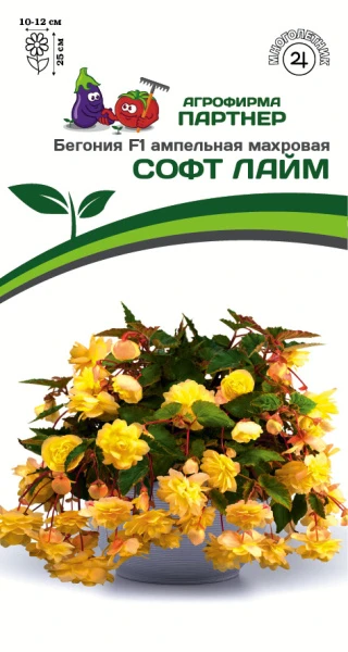 Софт Лайм - роскошная ампельная бегония для воплощения самых смелых идей в вертикальном обустройстве сада! Без сомнения, сочетает в себе все самое лучшее: невероятно эффектную ампельную форму и обильное, продолжительное цветение! Пышные растения достигают в диаметре более 60 см, при этом ниспадающие побеги, длиной до 40 см, создают водопад, полностью усыпанный королевскими махровыми ярко-желтыми цветками. Все части растения обильно напитаны влагой и оттого довольно хрупкие. Бегония предпочитает полутень, но в то же время положительно относится к утренним и вечерним солнечным процедурам. Оптимальным для нее будет тихое, защищенное от ветра место, где до 11 часов утра и после 17 часов вечера солнечно, а в остальные дневные часы ажурная полутень. В целом бегония теневыносливое растение и эта ее удивительная особенность активно используется в ландшафтном дизайне. Немного найдется красиво цветущих растений, способных придать праздничное убранство затененным уголкам сада. Бегония тут вне конкуренции. Яркая бегония - это прекрасный вариант для подвесных корзин, вазонов и один из самых эффектных цветков для украшения балконов! Рекомендуемый объем кашпо 7-8 л на одно растение.