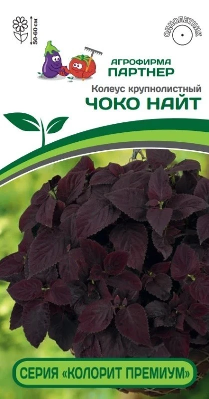 ЧОКО НАЙТ – завораживающий и чарующий, очень эффектный сорт! Крупные бархатистые листья насыщенного цвета темного шоколада, в условиях яркого полуденного солнца приобретают винный оттенок. Растения естественным образом формируют аккуратные полусферические шапки диаметром до 60 см, без вытягивания и оголения побегов. Колеус очень популярен в пейзажных цветниках, но в большей степени предназначен для крупных контейнеров и горшков. Отлично подходит для круглогодичного комнатного выращивания, зимнего сада и офиса. Очевидным достоинством станет достаточно редкое и позднее образование соцветий! Крупнолистному колеусу не рекомендуют делать прищипку, так как она может привести к уменьшению размера вновь отрастающих листьев. Растения крайне неприхотливы, с легкостью переносят высокие температуры, терпимы к невысокой влажности почвы и одинаково хорошо растут, как на солнце, так и полутени. Чтобы не слишком загущать посадки рекомендуем объем кашпо из расчета 4-5 литров на одно растение и схему посадки в грунте 35х35 см.