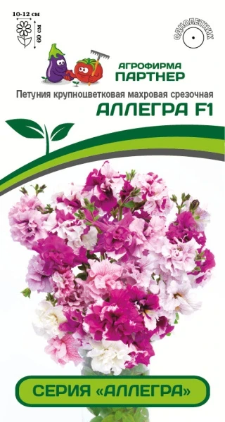 Селекция не стоит на месте. В ее важнейшем направлении - «однолетники на срезку» - произошла еще одна сенсация, и появилось творение в компании петуний – первый срезочный гибрид из серии «Аллегра», поистине достойный нашего с Вами внимания. И если прежние сорта и гибриды шли только лишь в кантри-букеты (мини-композиции), то для этой петунии - прямая дорога в эксклюзивную флористику. Серия создавалась с целью использования для срезки, благодаря своей способности давать крепкие, многочисленные, ветроустойчивые цветоносы с 100% махровыми невыгорающими цветками, причем, даже в условиях не совсем благоприятных. Богатая гамма оттенков, тонкая игра красок, мягкие тона и полутона позволяют создавать эффектные цветовые переходы, акценты. Эффектный куст, прочный и сильноветвистый, до 60 см высотой, увенчан многочисленными кружевными соцветиями до 12 см в диаметре, отличающимися плотностью и долговечностью. Одно растение и букет готов! Отличается чрезвычайной выносливостью и способностью адаптироваться к широкому диапазону температур от -5°С до +40°С. При минусовых температурах растение не гибнет, а лишь замедляет свой рост. Растения непрерывно цветут с ранней весны до поздней осени, благодаря гену мужской стерильности. Этот прекрасный ансамбль не обманет надежд цветоводов, ландшафтных архитекторов, флористов, а также покорит ранним цветением, невероятной декоративностью и будет радовать красотой и нежным ароматом. Чтобы петуния полностью раскрыла свой потенциал, рекомендуем объем кашпо 5-7 л и более на одно растение и схему посадки в грунте – 30х30 см.