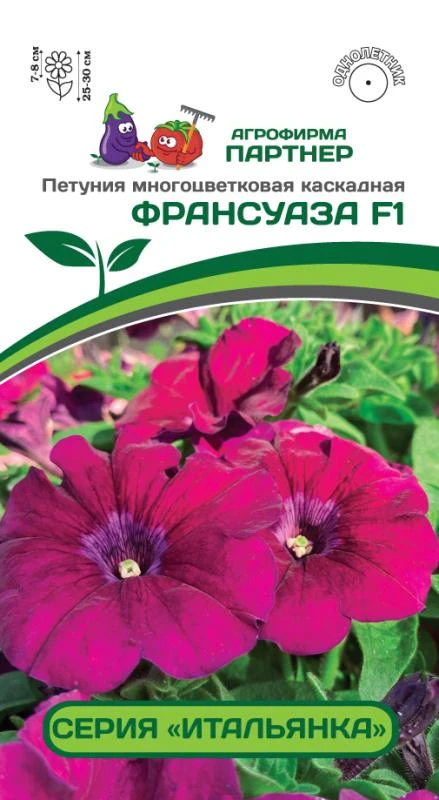 Петуния серии «Итальянка» - экстремально выносливый гибрид, совершенно новый тип петунии - результат многолетней селекционной работы. Отличается чрезвычайной выносливостью и способностью адаптироваться к широкому диапазону температур от -5°С до +40°С. При минусовых температурах растение не гибнет, а лишь замедляет свой рост. Благодаря удивительному ветвлению, побеги не оголяются, они стремятся вверх и в стороны, поэтому цветки равномерно распределяются по всему кусту, образуя пышные, красивые гирлянды. Данная группа выделяется достаточно «упитанными», но очень гибкими побегами, ширина куста достигает 60 см и более. Растения непрерывно цветут с ранней весны до поздней осени, благодаря наличию мужской стерильности. Сила и энергия гибрида позволяет растениям быть высокоустойчивыми к серой гнили (Botrytis). «Итальянка» достойна того, чтобы попробовать ее в своих идеях в саду, на балконе, а также в озеленении и ландшафтном оформлении. Любовь на долгие годы гарантируем! Чтобы петуния полностью раскрыла свой потенциал, рекомендуем объем кашпо 12-15 л на одно растение и схему посадки в грунте – 45х45 см.