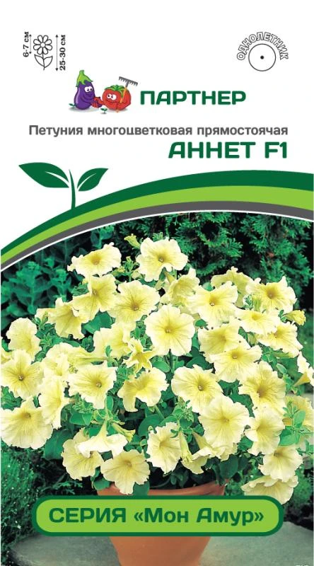 Серия «Мон Амур» – самая неподражаемая и сногсшибательная петуния! Нельзя не восхищаться ее аккуратной, пышной внешностью: цветков столько, что под ними полностью скрыты остальные части куста. Эти достоинства заложены генетически, как и замечательная способность адаптироваться к широкому диапазону температур, от –5°С до +40°С. Благодаря наличию мужской стерильности, растения непрерывно цветут с ранней весны до поздней осени. Ослепительно яркий наряд «Мон Амур» решит проблему декорирования любого уголка сада: будь то цветник, балкон или контейнер. Высадив ее на альпийскую горку, вы получите приподнятые цветные «кочки» диаметром 40-50 см. Чтобы петуния полностью раскрыла свой потенциал, рекомендуем объем кашпо 7-10 л на одно растение и схему посадки в грунте – 35х35 см.