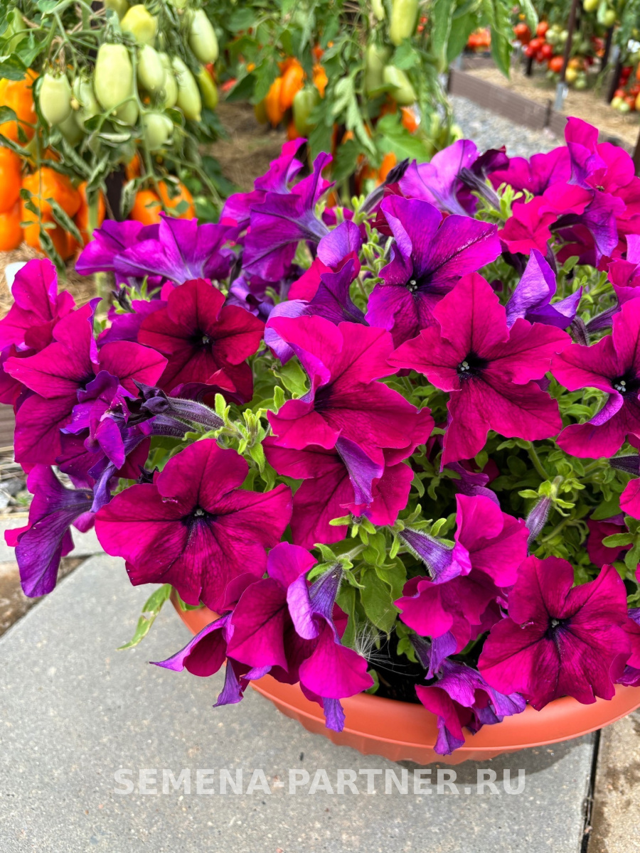САУЭР – серия-мечта, позволяющая получить выравненные по времени цветения растения точно к сроку! Петунии отличаются прекрасным ветвлением, а идеально сформированные кусты-полусферы, усыпанные крупными цветками, не оставят равнодушными даже самых требовательных цветоводов. Экстраобильное цветение обусловлено очень коротким интервалом между отцветшими и вновь распускающимися цветками. Это уникальное свойство обеспечивает продолжительный ландшафтный эффект ковровых цветников. Серия САУЭР не случайно зарекомендовала себя, как линейка идеальных летников для городского озеленения: растения цветут ярко и долго, приспосабливаются к различным экстремальным условиям, почвам и климату, устойчивы к болезням и вредителям, и, что немаловажно, в тщательном уходе не нуждаются. Высадите их в ковровых цветниках или в сочетании с другими однолетними растениями, их стебли переплетутся и сформируют целые цветочные лавины разных оттенков. Серия станет отличным выбором для размещения в кашпо или в контейнерной культуре как на балконах, так и в саду. Чтобы петуния полностью раскрыла свой потенциал, рекомендуем объем кашпо от 4 л на одно растение и схему посадки в грунте – 30х30 см.