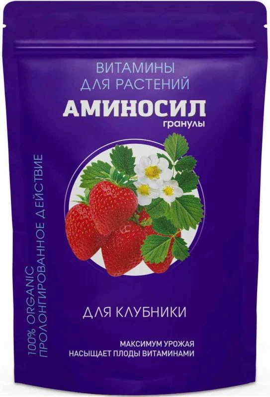 Витамины для клубники Аминосил в гранулах идеально подходят для ухода, питания и удобрения клубники (садовой земляники, виктории) всех сортов.