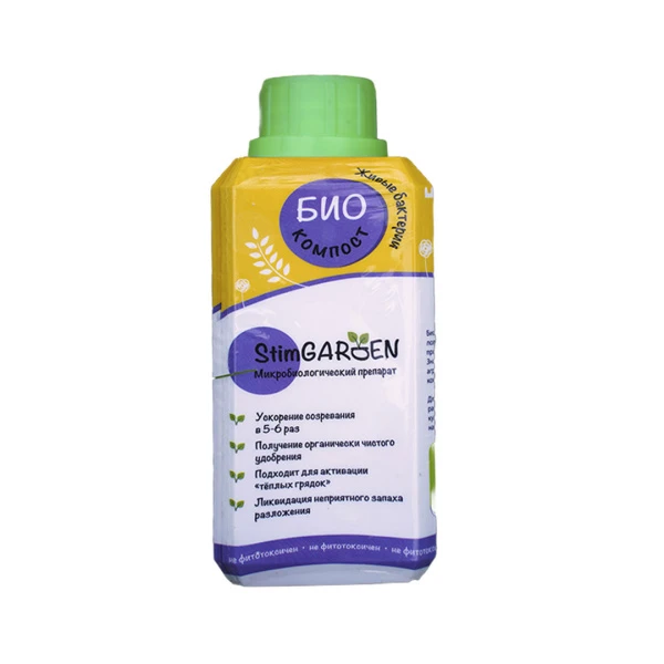 БИО компост StimGarden — микробиологический препарат, предназначен для быстрого получения органических удобрений. Ускоряет процесс созревания компоста в 5-6 раз. Значительно увеличивает количество агрономически ценных бактерий в готовом компосте.