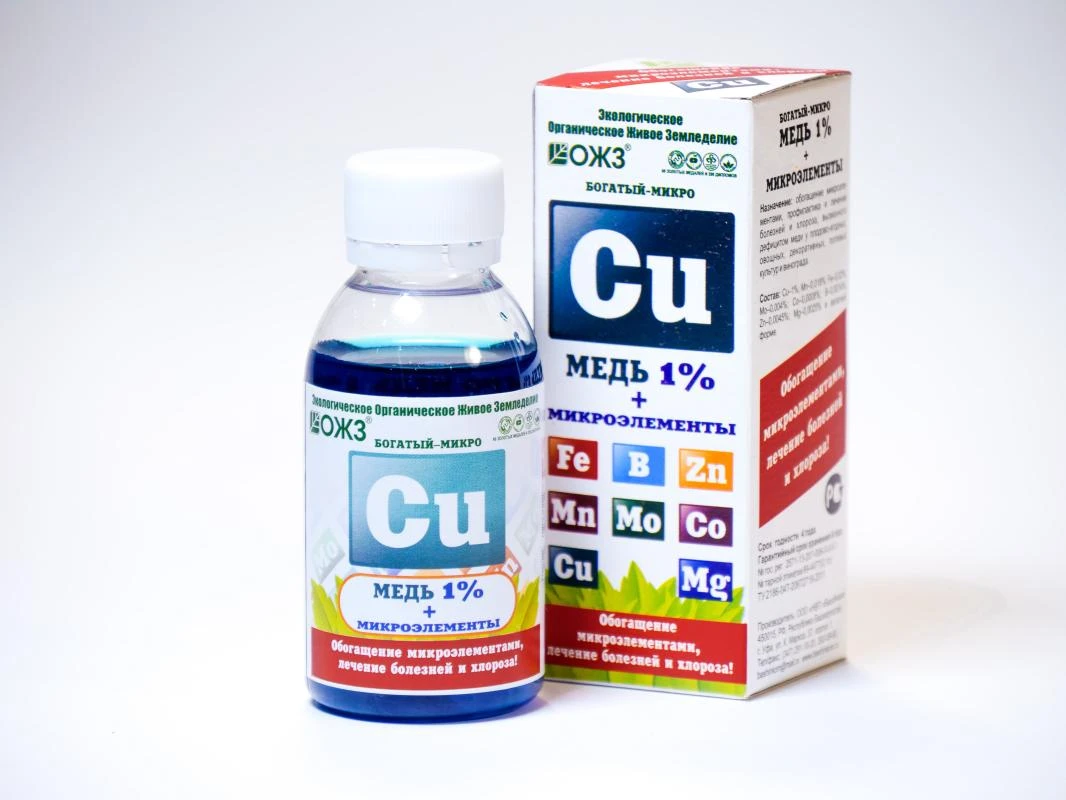 Микроудобрение для обогащения микроэлементами, профилактики и лечения хлороза, вызванного дефицитом меди у плодово-ягодных, овощных, декоративных, полевых культур и винограда.