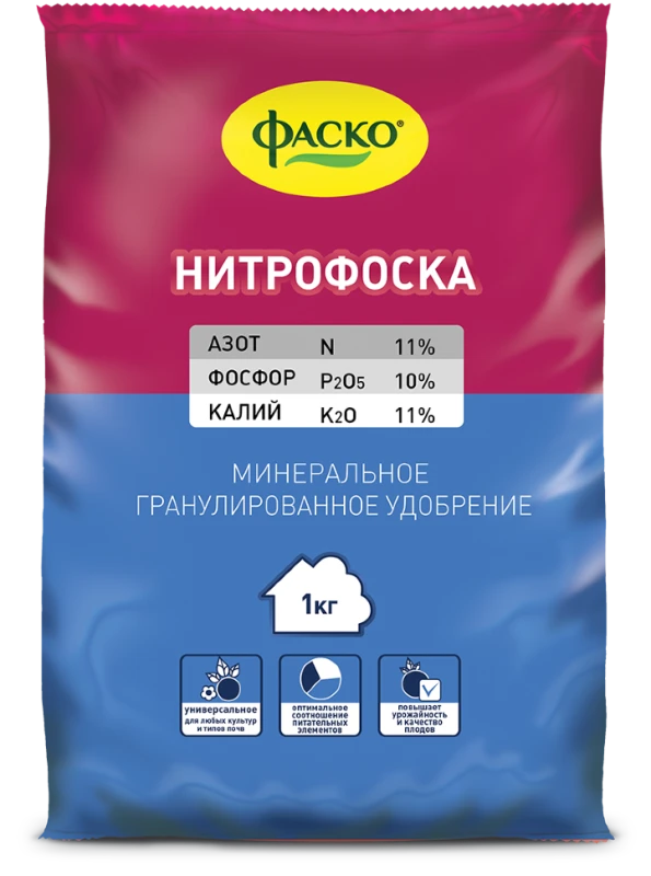 Сложное гранулированное азотно-фосфорно-калийное удобрение для применения под все выращиваемые культуры на всех типах почв.