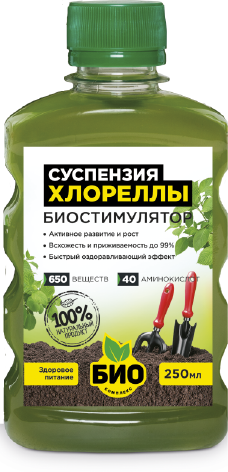 Суспензия Хлореллы – 100% органический высокоэффективный природный биостимулятор роста, ускоряющий корнеобразование, развитие и цветение; усиливает иммунитет растений, антистрессовую устойчивость при засухе, пересадке; восстанавливает увядающие и засушливые растения; обогащает почву, стимулирует рост почвенных микроорганизмов, предотвращает растрескивание почвы, сокращает потребность в удобрениях и воде; входящий в состав природный антибиотик уничтожает патогенные микроорганизмы.