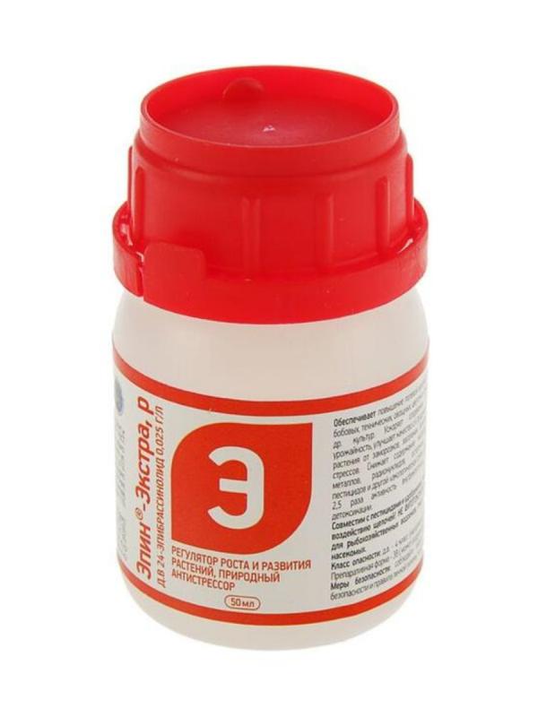"Эпин-Экстра" (0,025 г/л (д.в.24-эпибрассинолид)- регулятор и адаптоген широкого спектра действия, обладает сильным антистрессовым действием, воспроизведенный аналог природного вещества