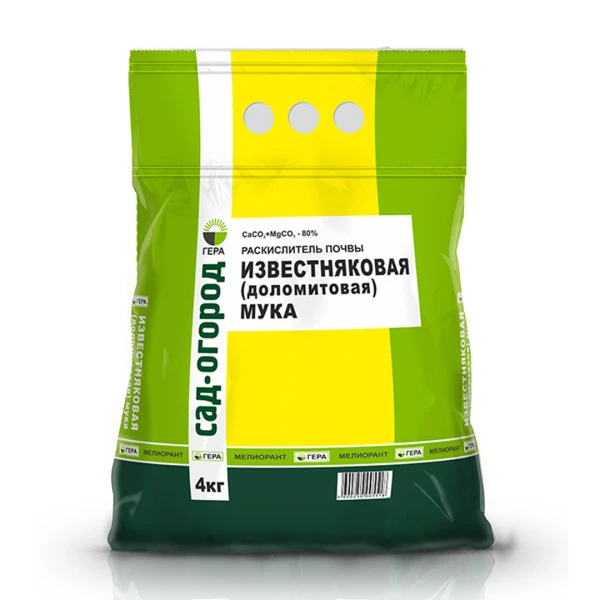 Способствует повышению урожайности культур, устойчивости растений к различным заболеваниям. Известняковую (доломитовую) муку вносят осенью или весной, под перекопку почвы. Рекомендуемая периодичность внесения 1 раз в 5 лет.