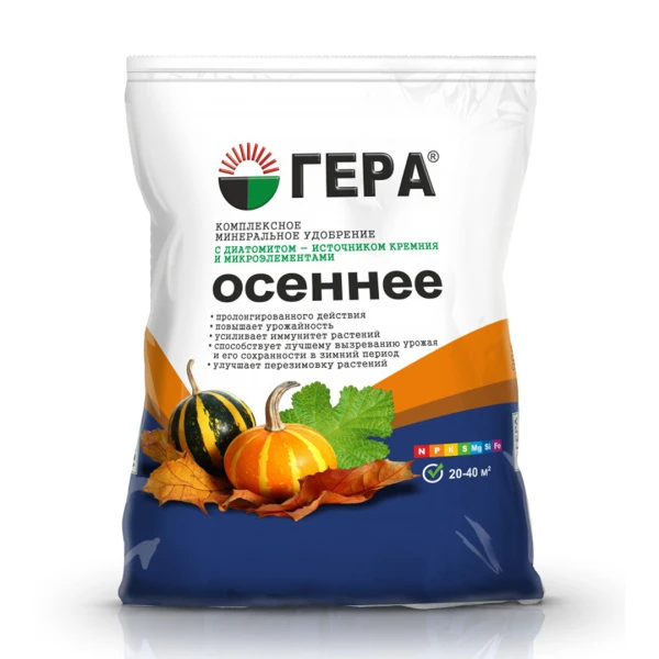 Комплексное минеральное удобрение (тукосмесь) на основе азотно-фосфорно-калийного удобрения и диатомита. Предназначено для основного внесения и подкормки в летне-осенний период плодово-ягодных и хвойных деревьев и кустарников, цветочно-декоративных культур, основного внесения под осеннюю перекопку и при осенней посадке земляничной рассады, плодово-ягодных и хвойных деревьев и кустарников, луковичных культур, а также удобрения и закладки газона осенью.