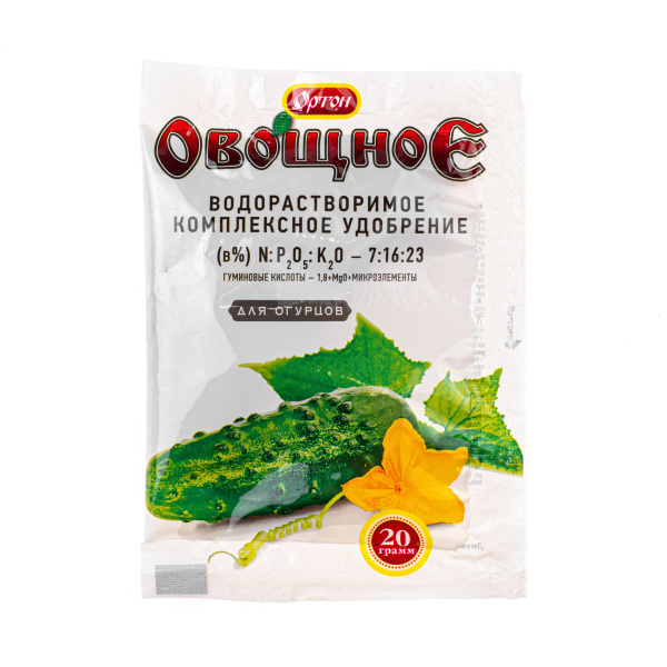 Ортон Комплексное водорастворимое удобрение с гуматом ОРТОН-ОВОЩНОЕ для ОГУРЦОВ 20г.